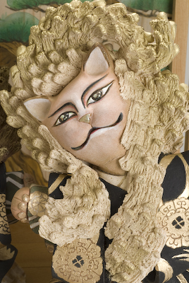 八百萬の願いを引き受け力強く滑稽で華やかな歌舞伎猫を表現しました。