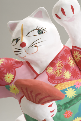 平面作品から立体作品へ、張り子の良さ、特徴を生かした作品作りを心がける。備中張り子倶楽部で、日本招き猫倶楽部の会員さんと知り合い、招き猫の魅力を知る。張り子の持ち味を生かした招き猫作りを考察中。2006年は、“お多福招き猫”にチャレンジする。2007年は、昔しから好きなテーマ“踊る”と“招き猫”を合体させて、“おどる招き猫”のテーマで備中張り子にチャレンジする予定。
