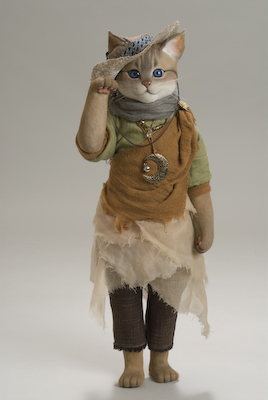 私は無類の猫好きなので、主に今は猫作品をつくっております。ねんどの上から布を貼ってつくる、布貼り人形をつくっております。これからも猫達の世界を大切にし、見ているものに語りかけるような猫の作品づくりを目指していきたいです。