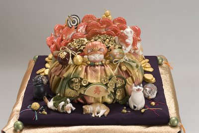 私が子供の頃は、工作になる材料が少ない時代でしたので、捨ててしまうような物を大事に取って置き、思いつくまま創造の世界に没頭していました。どんな事でもとことん納得するまでやり遂げないと気が済まない凝り性で、人から見たら無駄な物ばかりだったかもしれません。でもそれが今では作品作りのアイデアとなり継続出来る原動力になっていると思います。唯一物作りの根底が覆されたのは猫作りでした。「なぜ猫にならないのか?」毎日粘土と格闘して、何百個作ってもその中で満足出来るのはほんのわずか、まだ着色していない猫の方が多いかもしれません。これからの作品の傾向として、顔や手が動くからくり猫や母となり子供と共に経験した思い出を織り交ぜながら、人間に一番近い猫にその思いを込め制作して行こうと思います。「猫ってこんな仕草もするよね」と思わずうなずいてしまう様な、楽しく心が癒される作品になれば良いですね。
