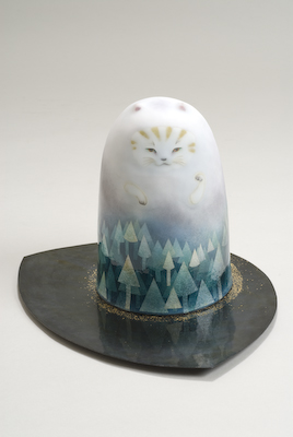 現在は猫のヒメと同居中。いつのまにか増えてしまっている猫のモチーフの七宝作品は絵皿、アクセサリー、立体の立ち招き猫、額絵の数々とどんどん広がっていく。最初は家の猫をモチーフにした小さな皿1つだけだったのに・・・これも招き猫様の力か作品を喜んでくださる方々のおかげであろうか。これからも、どこにもない猫たちを生み出していきたい。