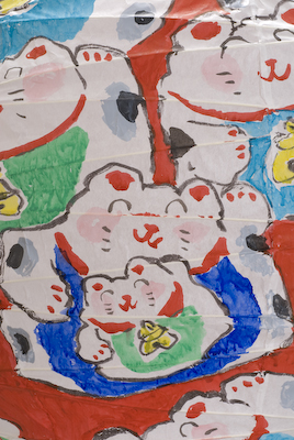 元気の出る開運招き猫大提灯です。
