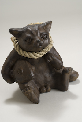 強面の猫が、厄を除けつつ、福を招きます。くるっと丸い左手は、いつもは福を招きますが、時にはパンチとしてくり出されます。