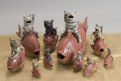 瀬戸の土を使って、人形や動物等を制作しています。陶器により、心と心が触れ合えるような、安らぎのある作品を目指しています。