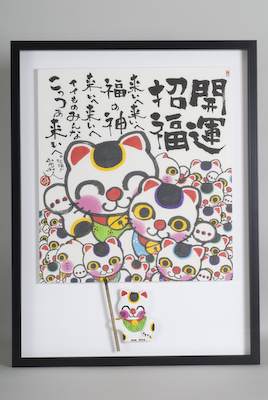 第160回記念大蚤の市にて「開運招福 招き猫」手描き色紙の実演販売。