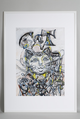 素材:木ロウ、すみ、アクリル絵具、ホワイトボード紙 |