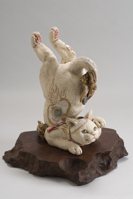 ならば、招き猫も逆立ちすれば、もっと多くの福を招いてくれるのではないでしょうか。そんな思いで作りました。 |