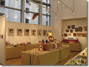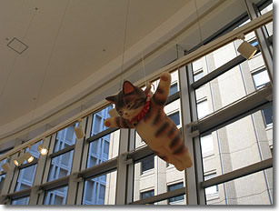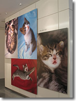 | 2月22日、猫の記念日にあわせて、猫をテーマに活躍しているアーティストが一堂に会するイベント「CATアートフェスタ」が開催されました。会場は、昨年のオープン以来、人気を集めている高感度スポット丸の内OAZOの丸善本店ギャラリー。東京駅丸の内北口を出て右手に見える新しいビルです。忙しそうに通り抜けていく通勤途中の人々が「CATアートフェスタ」のディスプレイの前で足を止めている姿が印象的でした。 |