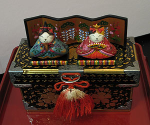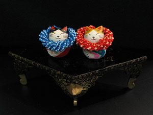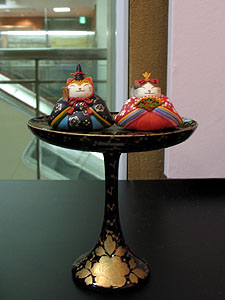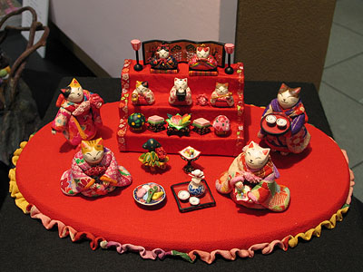 掌に乗るくらいの愛らしい猫童子を生みだす人形作家・松本浩子さん。華やかな段飾りから、貝殻びなまで、定評のあるおひなさまを中心とした個展です。お人形はもちろん、小さなお道具のひとつひとつにまでこまやかな愛情が惜しみなく注がれています。