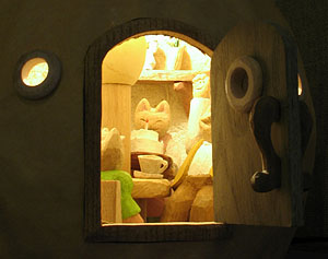 | ←“猫バッグを持った猫”・瓢箪ライト付き |
