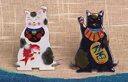 ▲立ち招き猫(七宝焼)12cm 各6,000円 税別