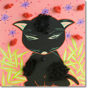 深井和子さんの手から生まれる愉快な「猫くん」たちは、とにかく明るくカラフル、パワフル。見ているだけでハッピーな気持ちになれます。詩画家として活躍されている深井さんの墨絵やアクリル画など平面作品も展示予定。
