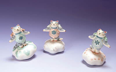 「梅花の椅子に座り、そら豆から生まれ、笹舟で川遊び、ガラス玉と旅をする……ちっちゃな豆猫たちが大活躍、自然や風物などから、月ごとの季を寄せます」 金沢在住の人形作家、松本浩子さんの「百々猫堂カレンダー2009」原作を中心とした展示。