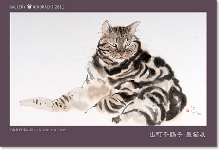 水墨画で描く猫。ベルギー、フランス、中国、韓国など、世界各国で活躍されている画家、出町千鶴子さんの個展。油絵の小品も展示予定。