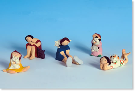 「人と猫、ペアの作品をつくってみました。楽しい事、悲しい事、つらい事、嬉しい事、どんな時も、いつもそばにいてくれました」益子で作陶する半澤淳子さんの個展。ここほれニャンニャン窯の小さな猫たちも、一緒にお楽しみください。。