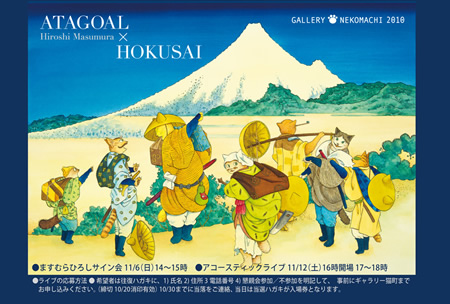 ロングセラーコミック「アタゴオルシリーズ」の漫画家ますむらひろしが、葛飾北斎の浮世絵に挑んだ異色のコラボ作品「アタゴオルカレンダー2012 ATAGOAL×HOKUSAI」の美しい原画を展示。サイン会、アコースティックライブのファン感謝イベントも予定。