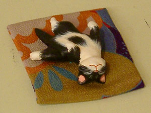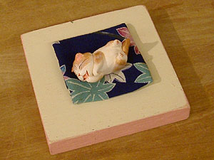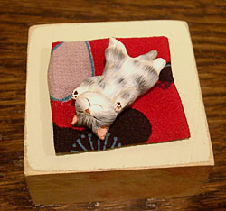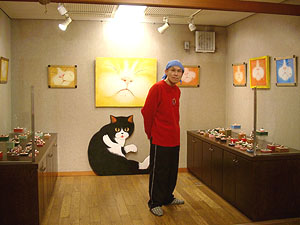 …今回の小さな作品で新境地を拓いたと語るもりわじんさん(搬入日の会場にて)